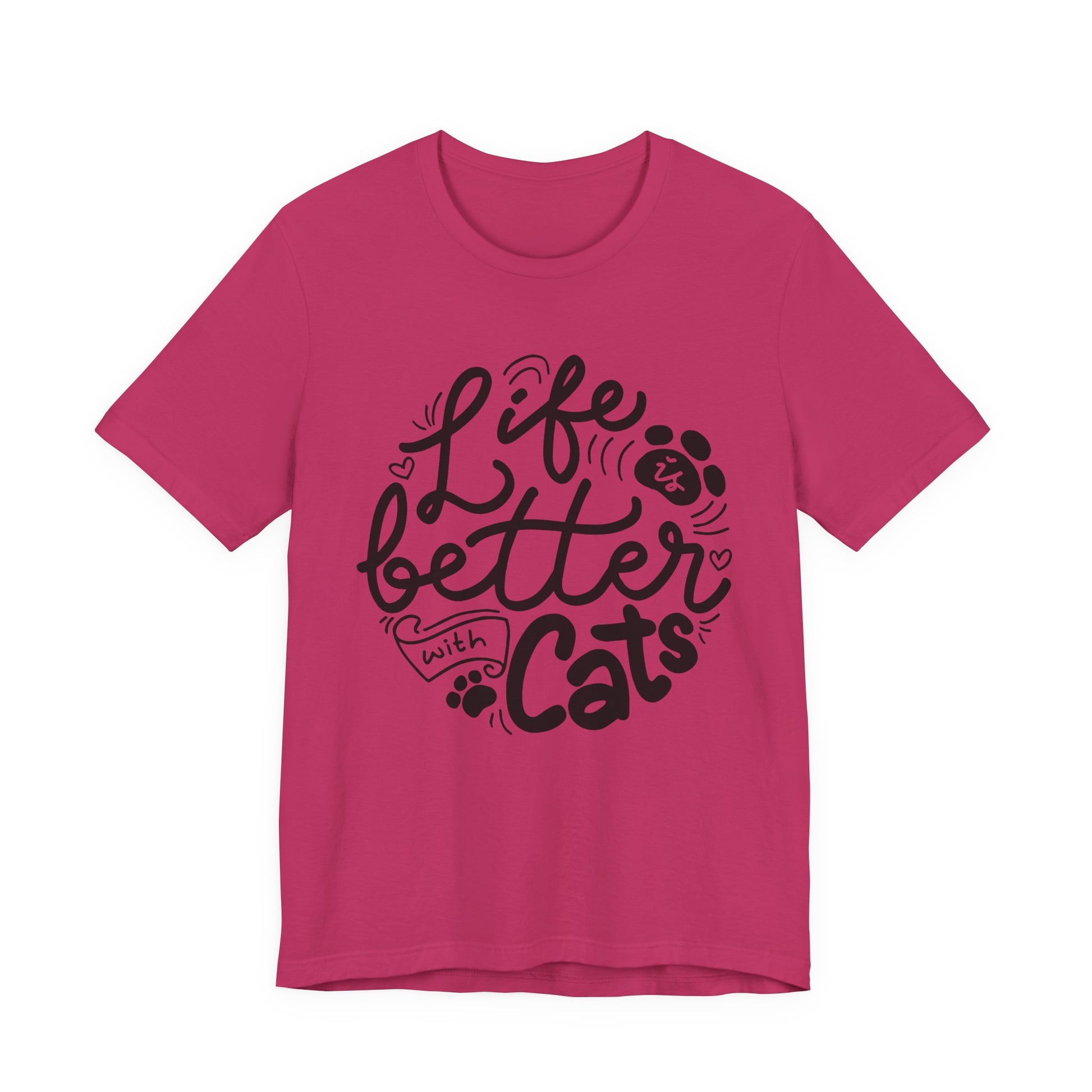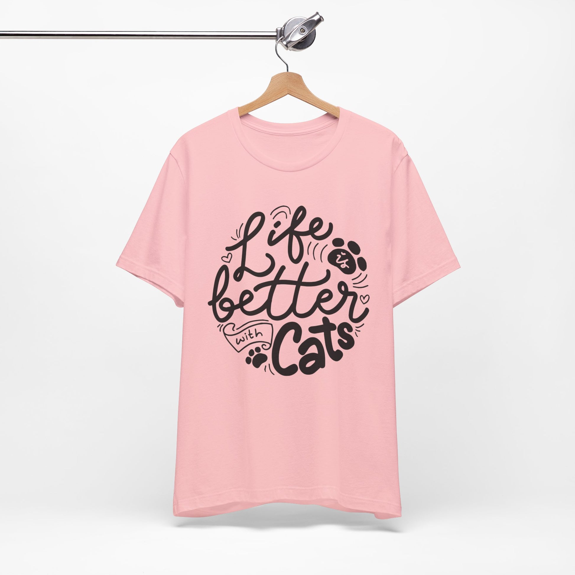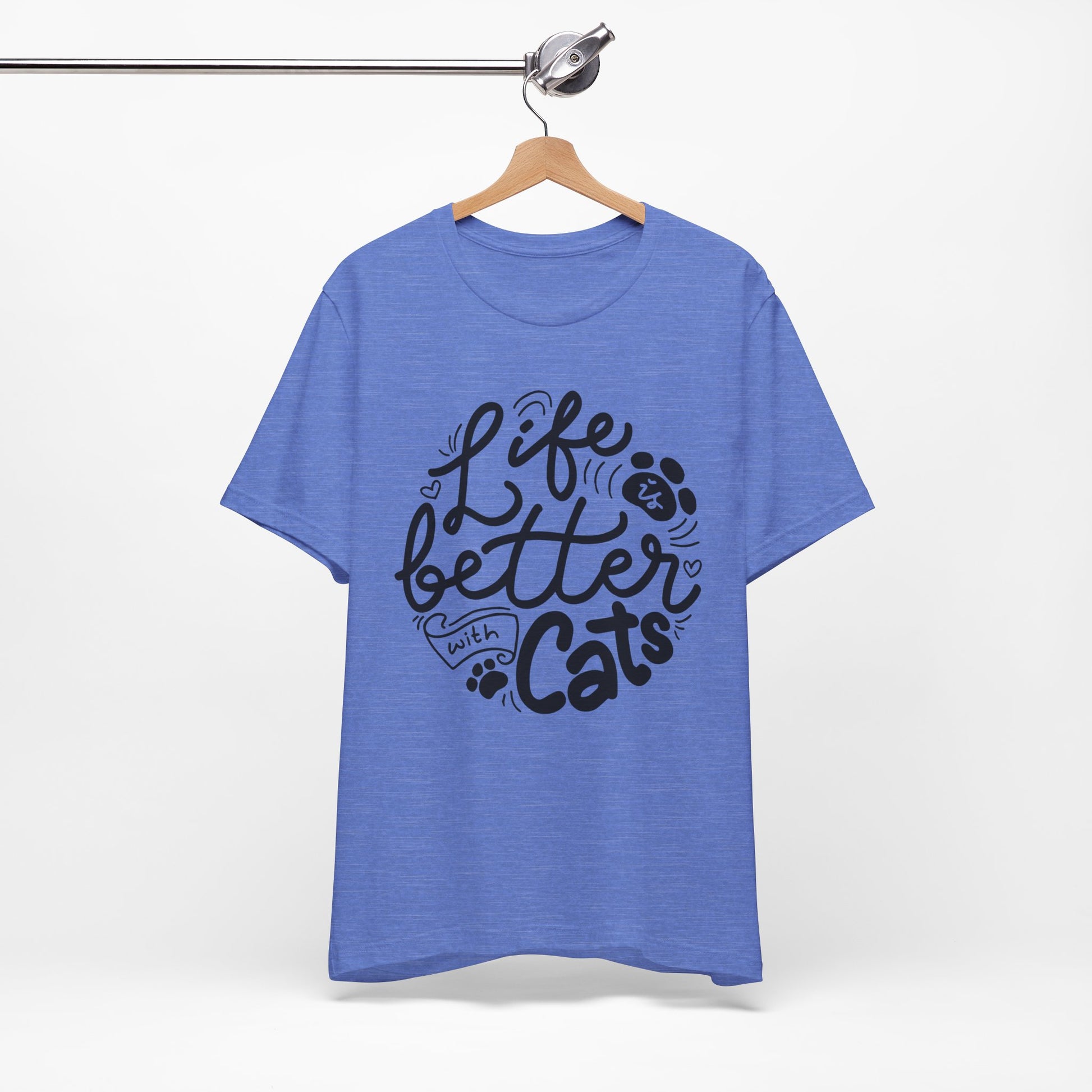Experience the joy of feline companionship with this stylish unisex jersey short sleeve tee. Designed for both comfort and flair, this shirt boasts a classic cut that makes it ideal for casual outings or lounging at home. The playful design, featuring the phrase "Life is better with Cats," resonates with cat lovers of all ages, making it a perfect gift for birthdays, holidays, or just because. Lightweight and breathable, this tee is perfect for spring and summer wear, offering a versatile addition to any wardrobe. It easily transitions from relaxing at home to a casual day out, ensuring you feel great while showcasing your love for cats.