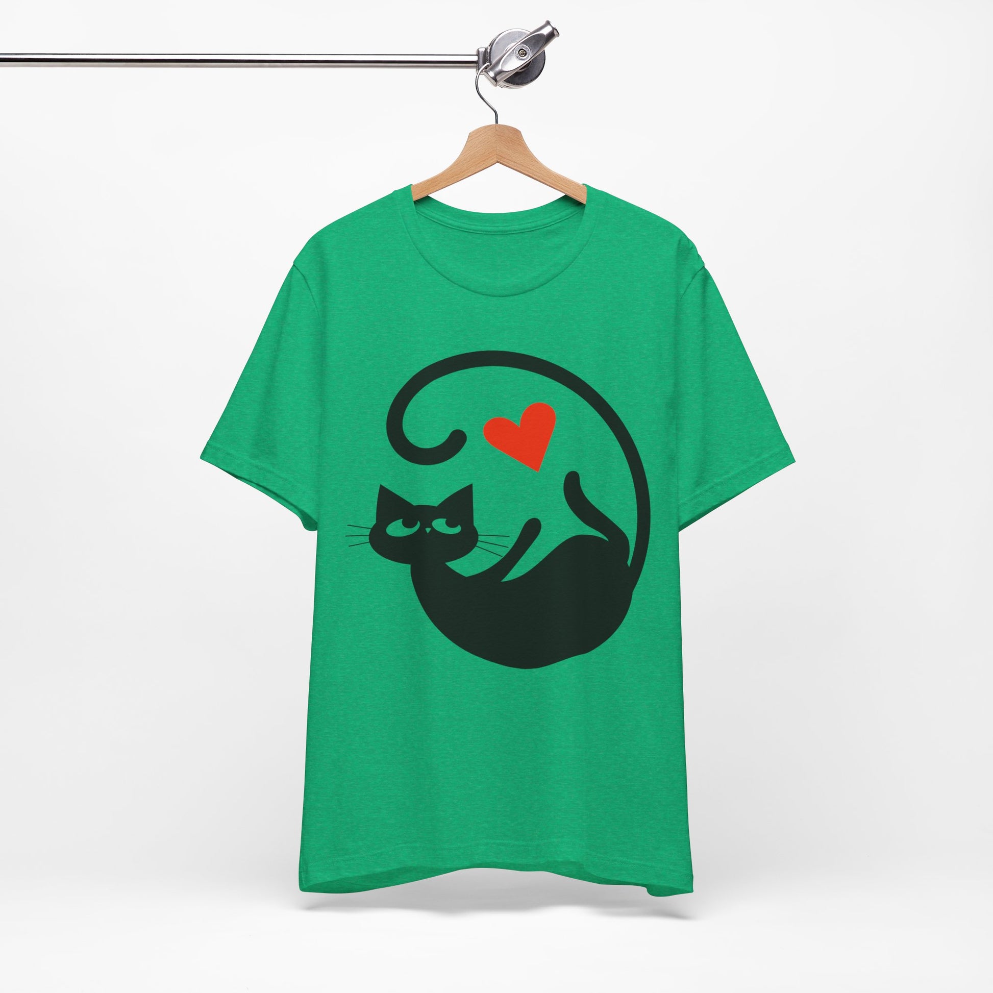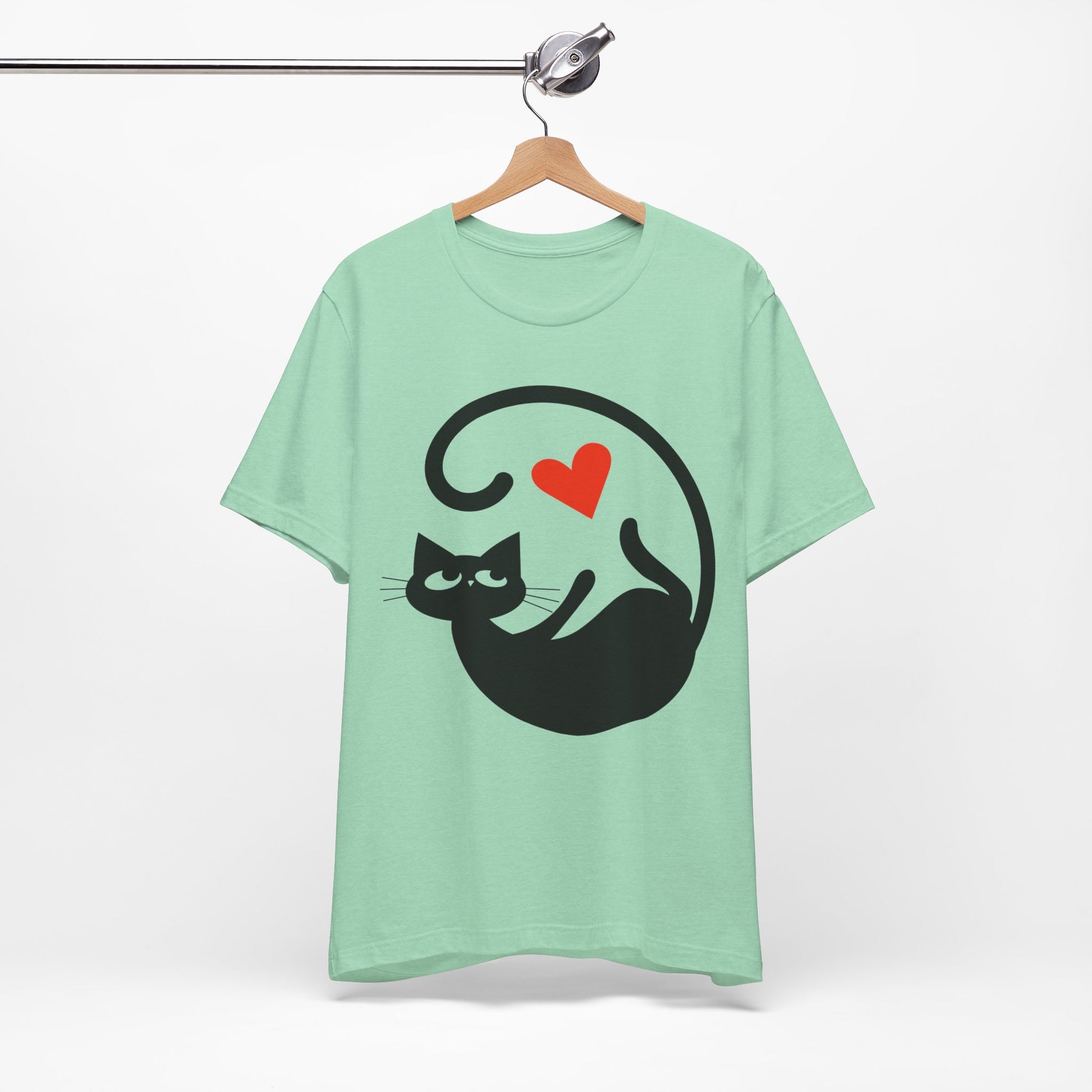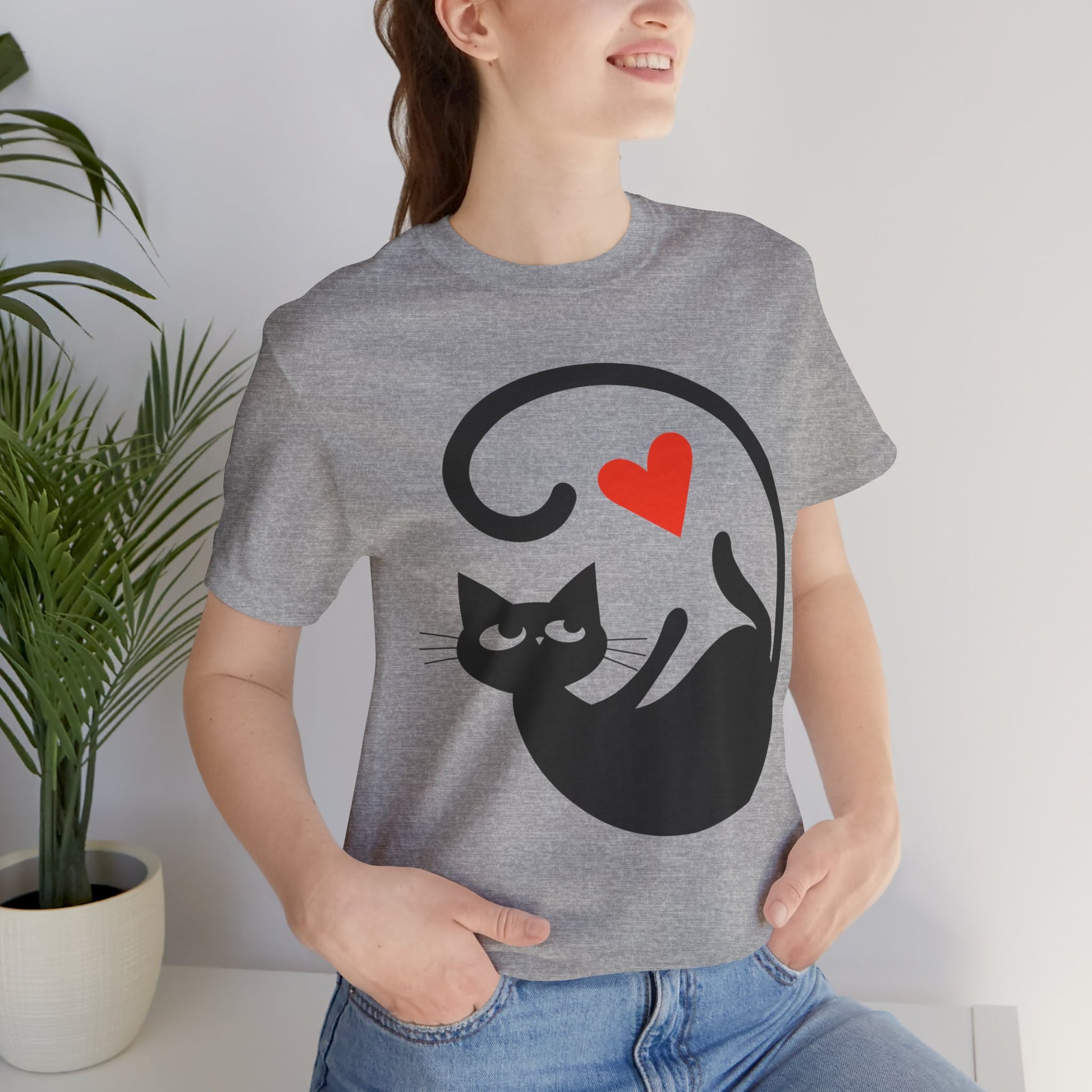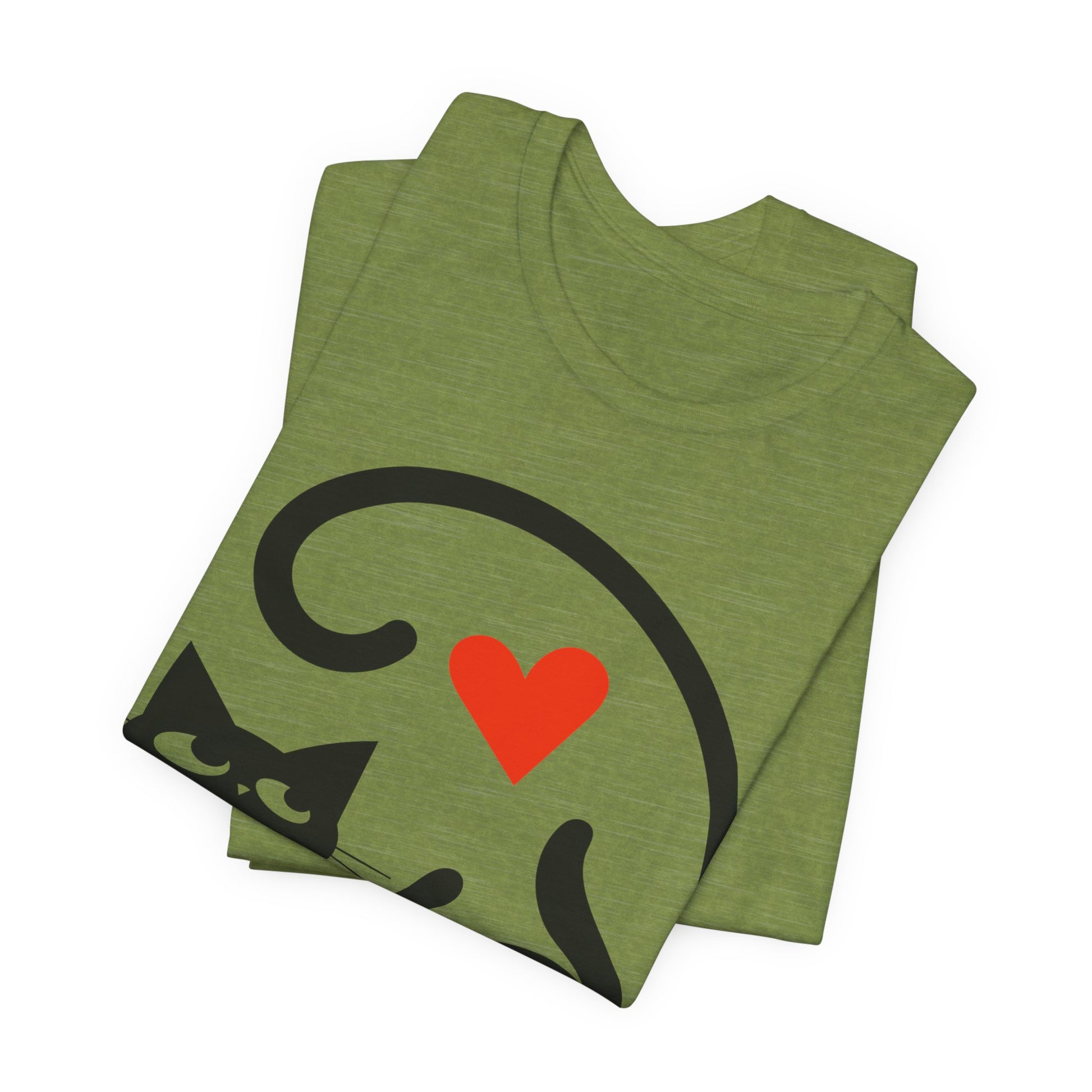 Embrace your love for furry friends with this adorable Unisex Jersey Short Sleeve Tee. Featuring a charming design of a black cat with a heart, this tee radiates playful vibes and warmth, making it a perfect fit for cat lovers and anyone who enjoys whimsical fashion. Its lightweight, breathable fabric ensures all-day comfort whether you're lounging at home or out with friends. The classic crew neckline and retail fit make it versatile enough for casual outings or semi-formal events. Ideal for any occasion, including birthdays, holidays, or just because, this tee is a delightful addition to your wardrobe, bringing joy and conversation wherever you go!