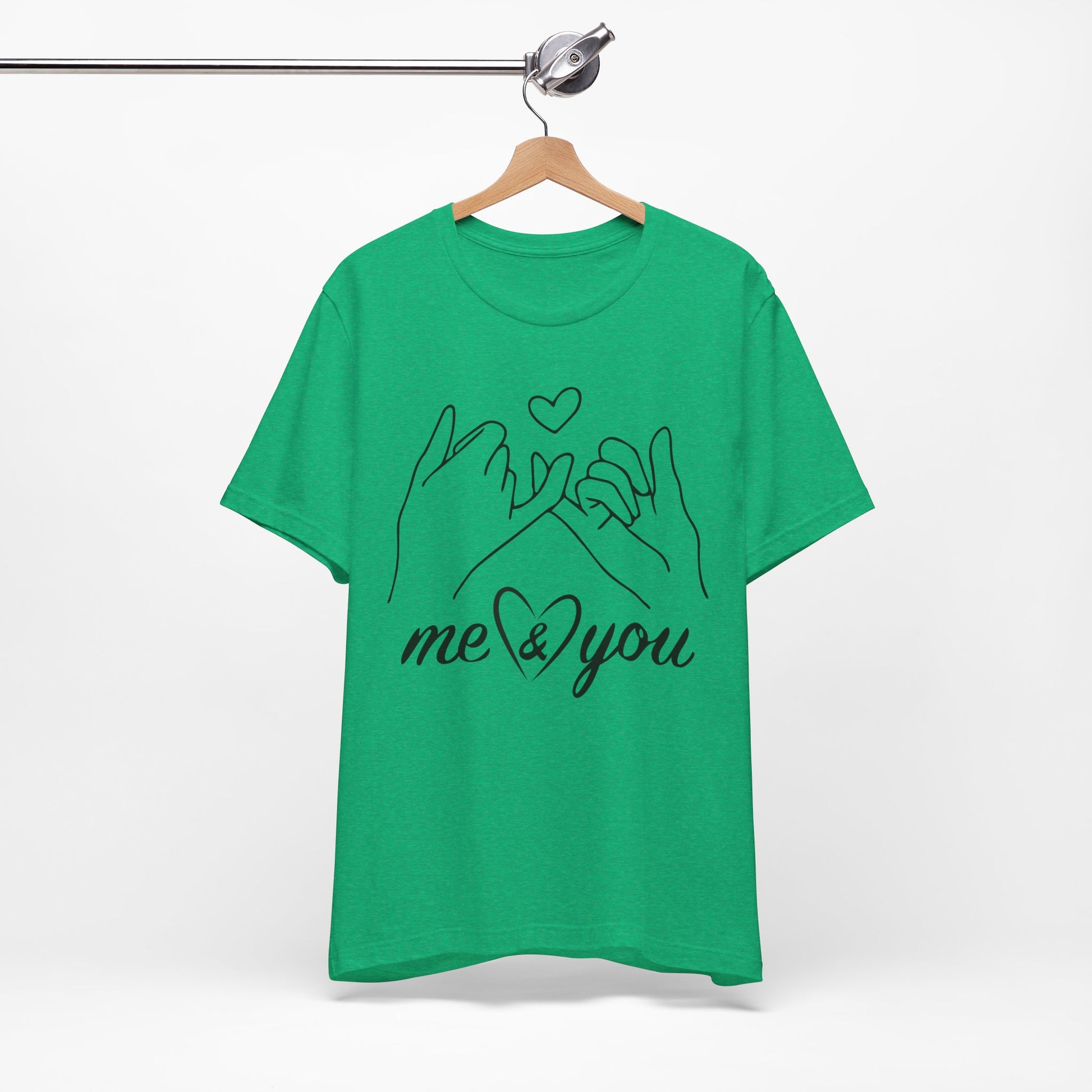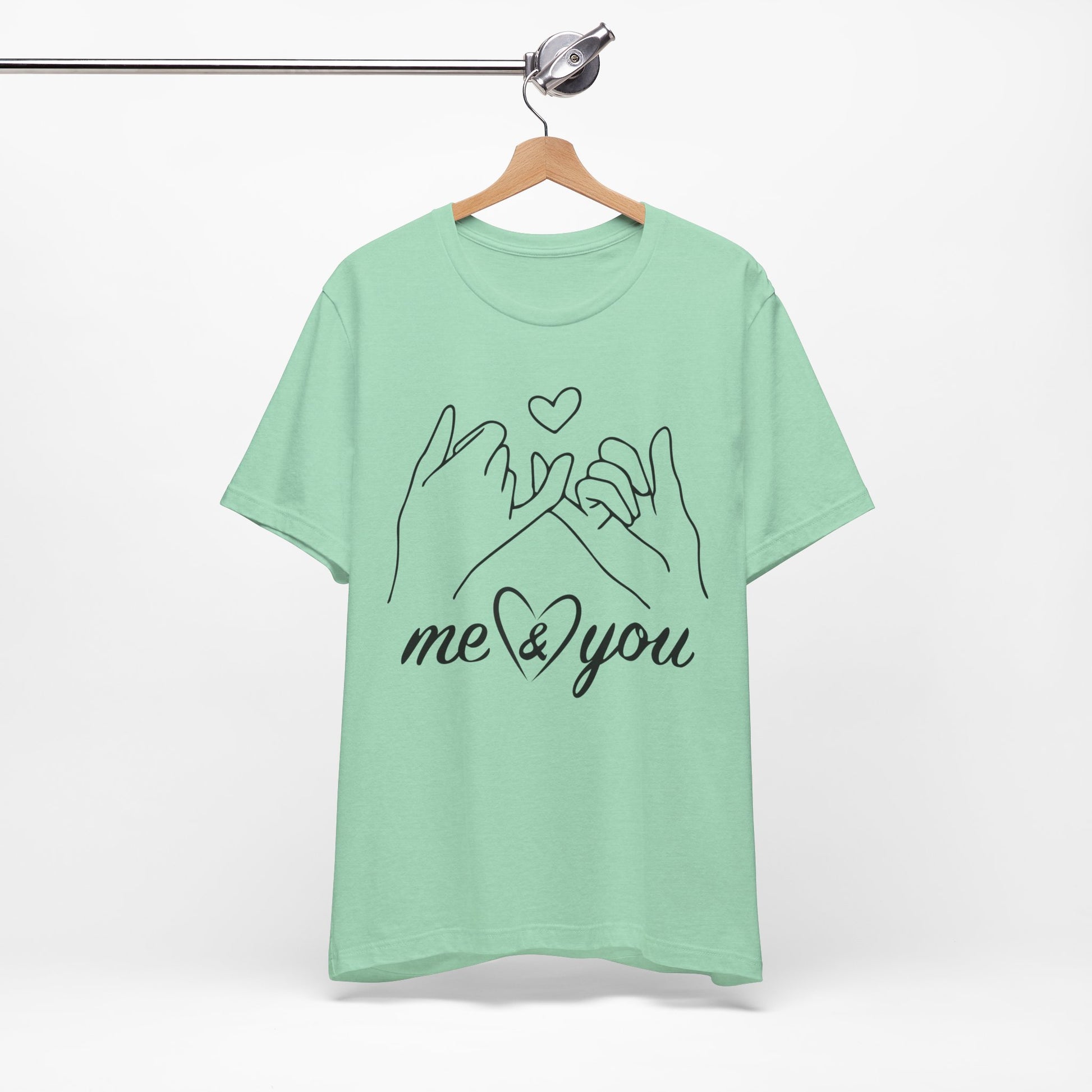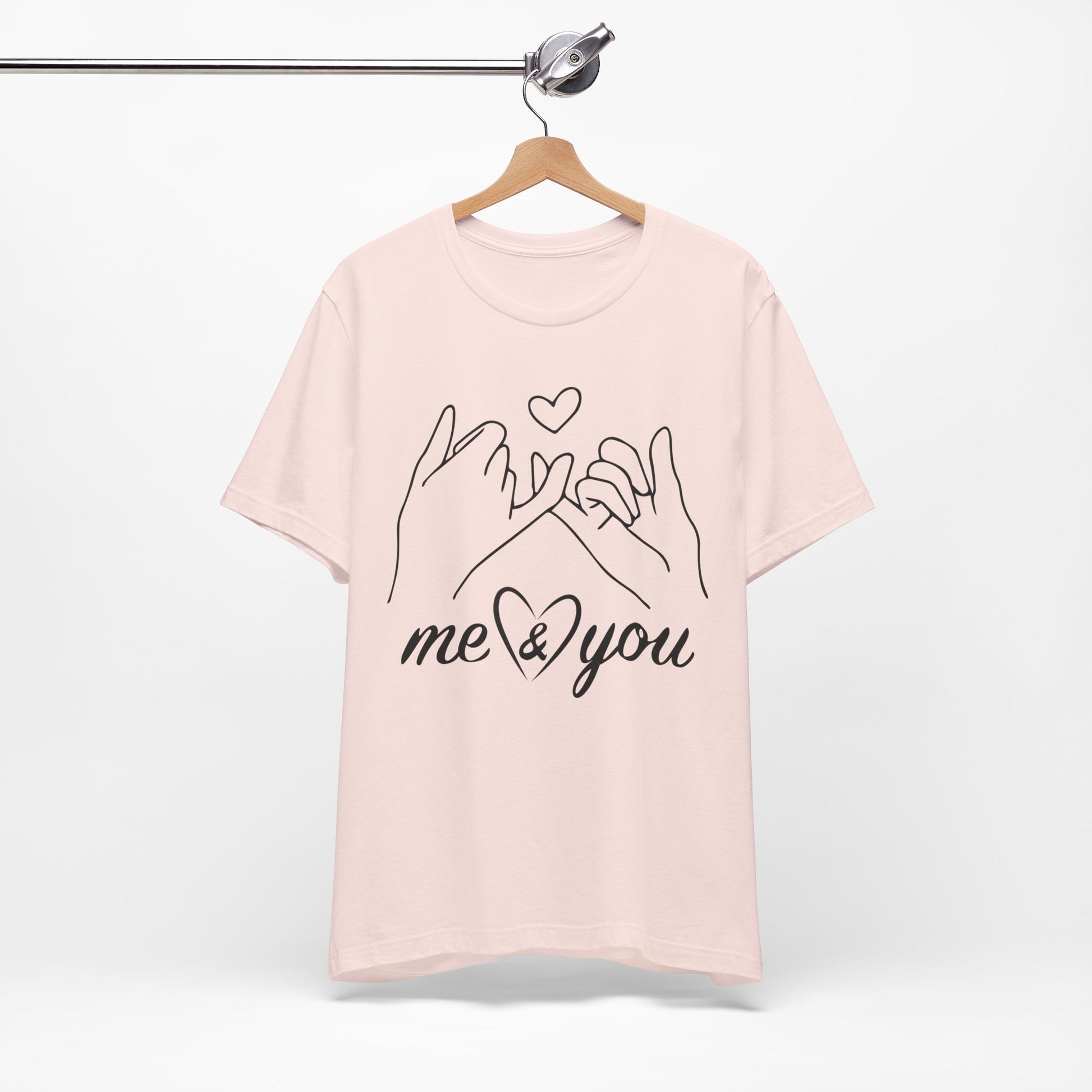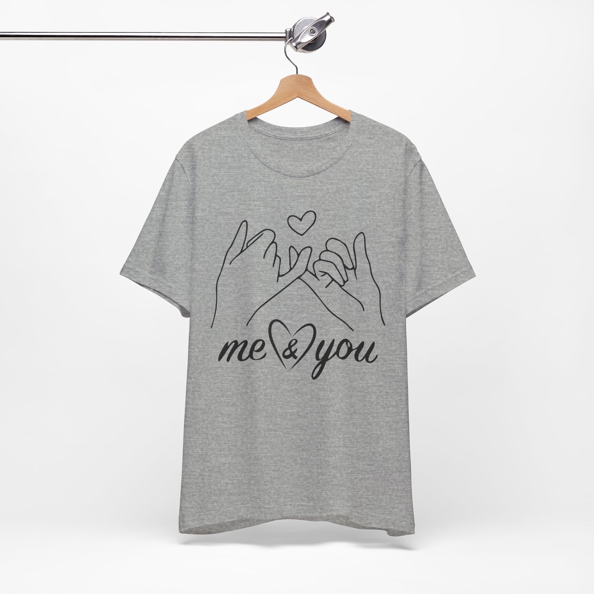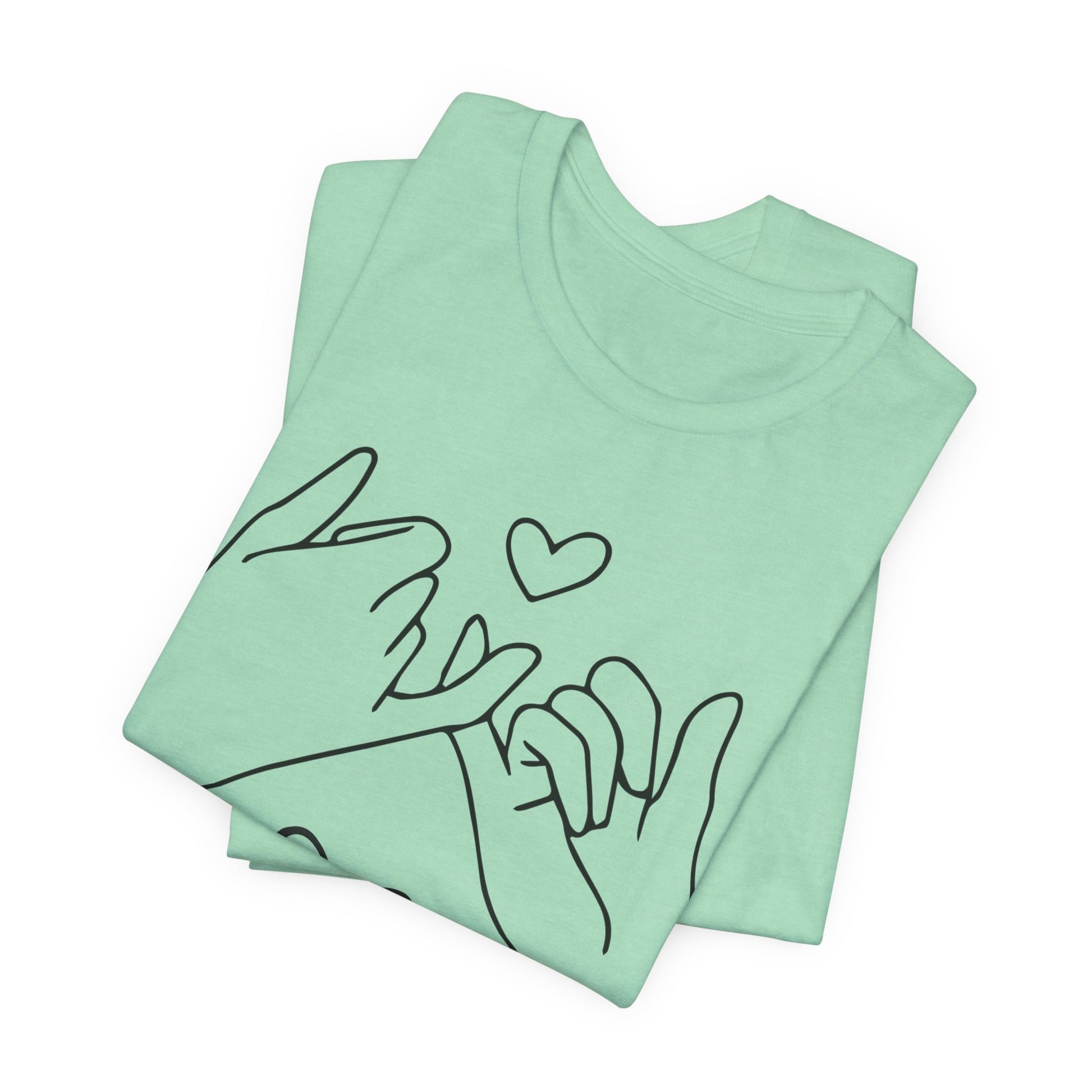 Introducing our cozy and stylish Unisex Jersey Short Sleeve Tee, perfect for everyday wear or special occasions. This shirt exudes a warm and inviting vibe, making it an ideal choice for casual outings or relaxed gatherings. The charming design features illustrated hands forming a promise, perfect for expressing love and connection between friends, family, or partners.