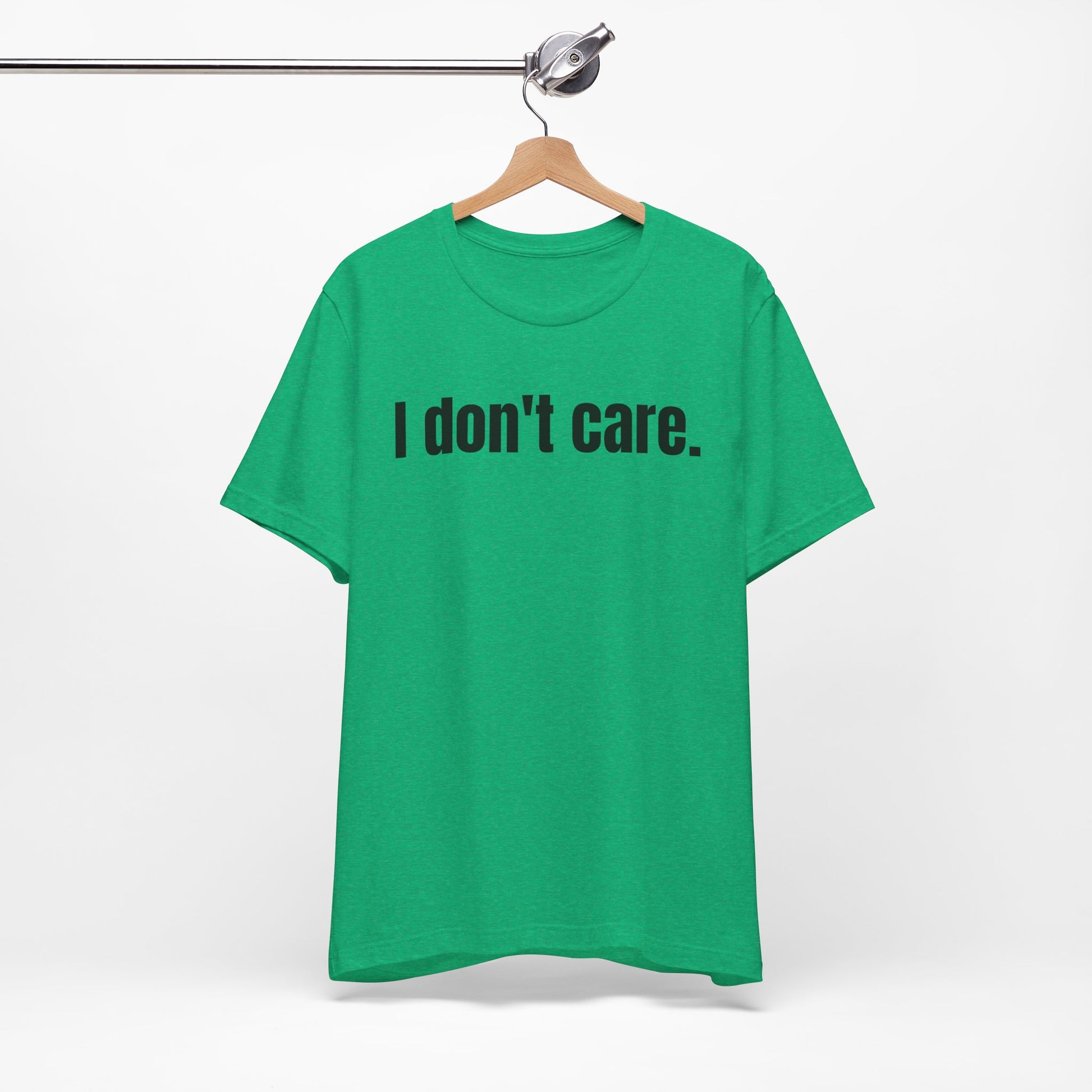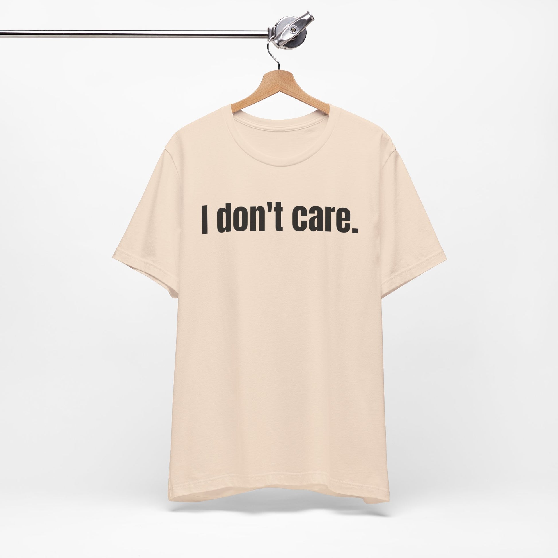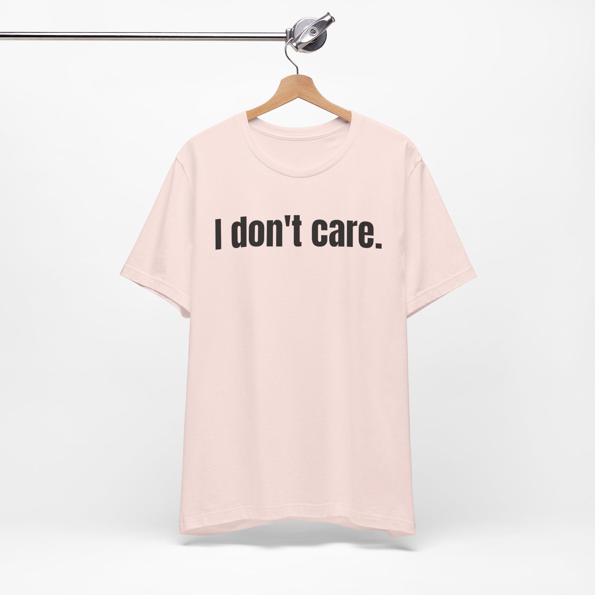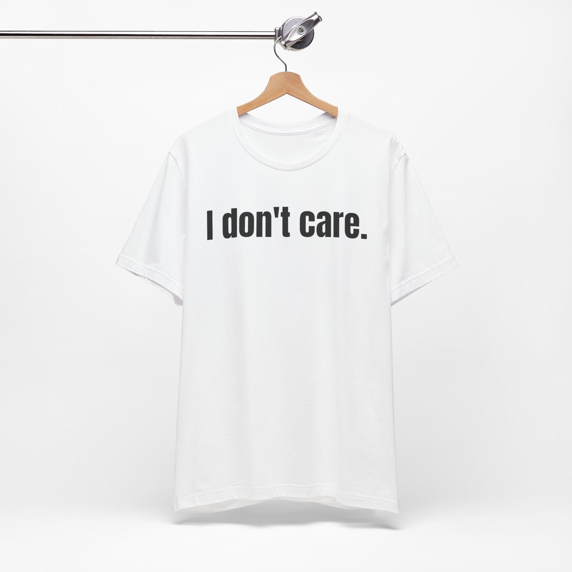 Express your nonchalant side with our "I Don't Care" graphic tee. A bold and humorous statement for those who embrace an easy-going, take-it-or-leave-it attitude. Perfect for casual wear.