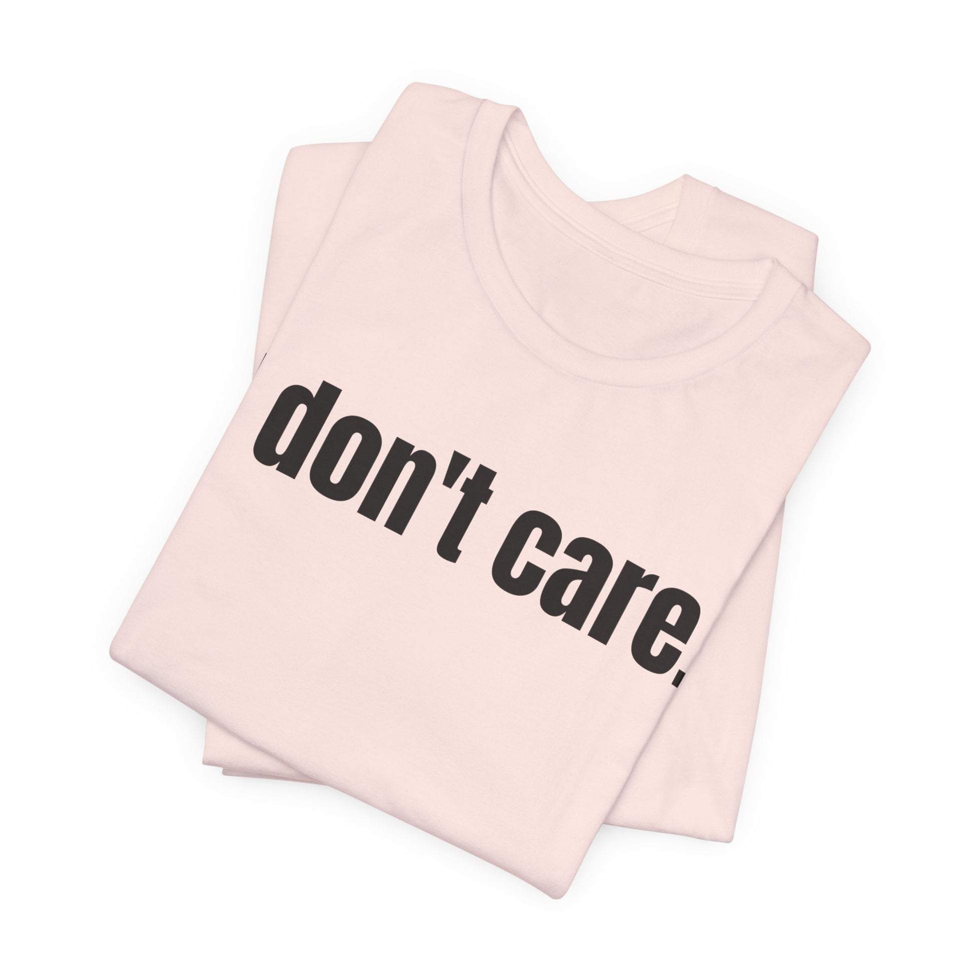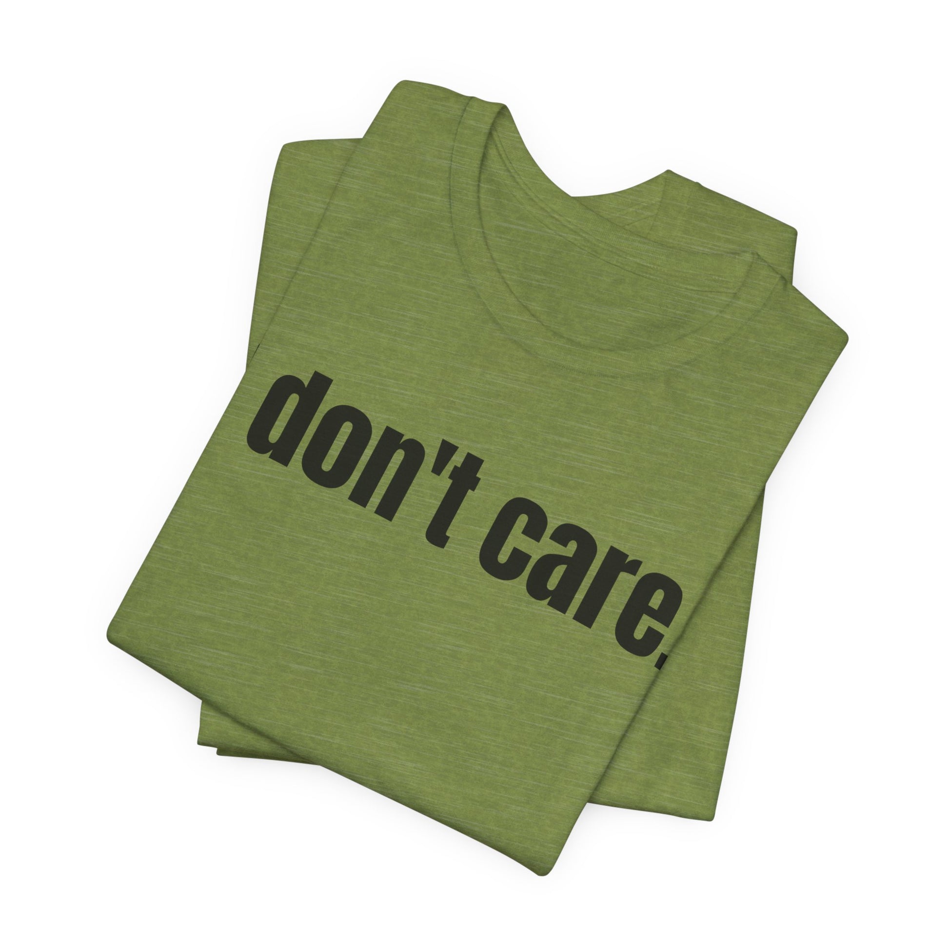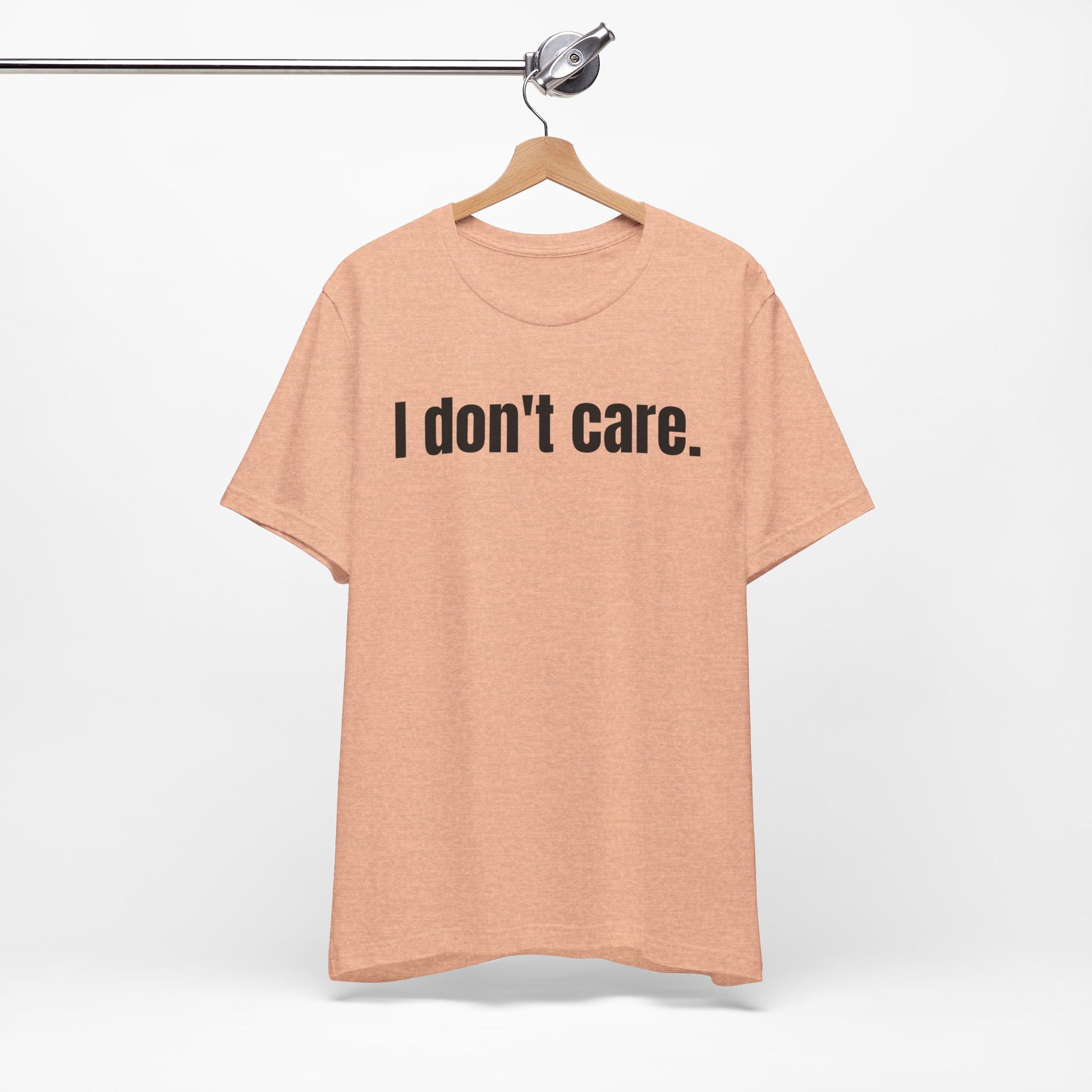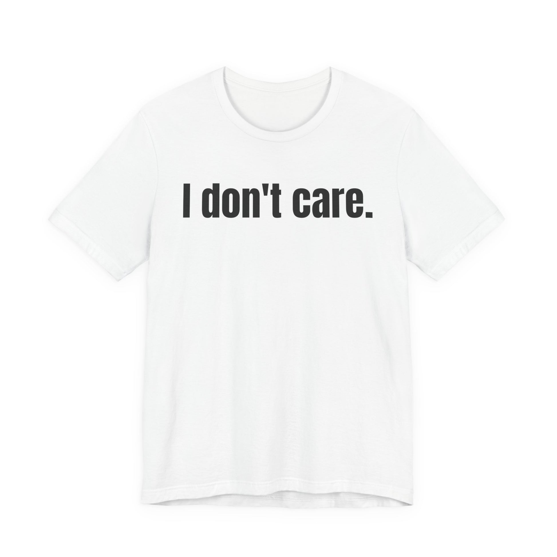 Express your nonchalant side with our "I Don't Care" graphic tee. A bold and humorous statement for those who embrace an easy-going, take-it-or-leave-it attitude. Perfect for casual wear.