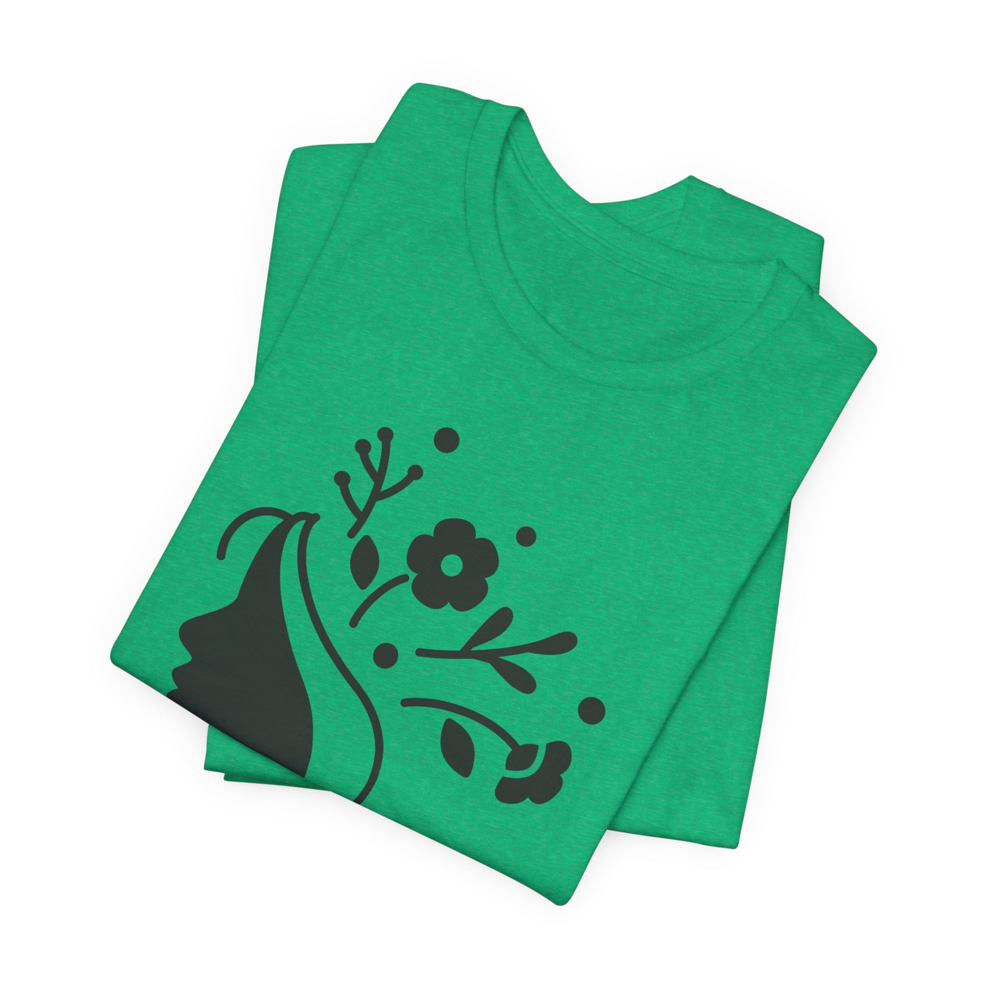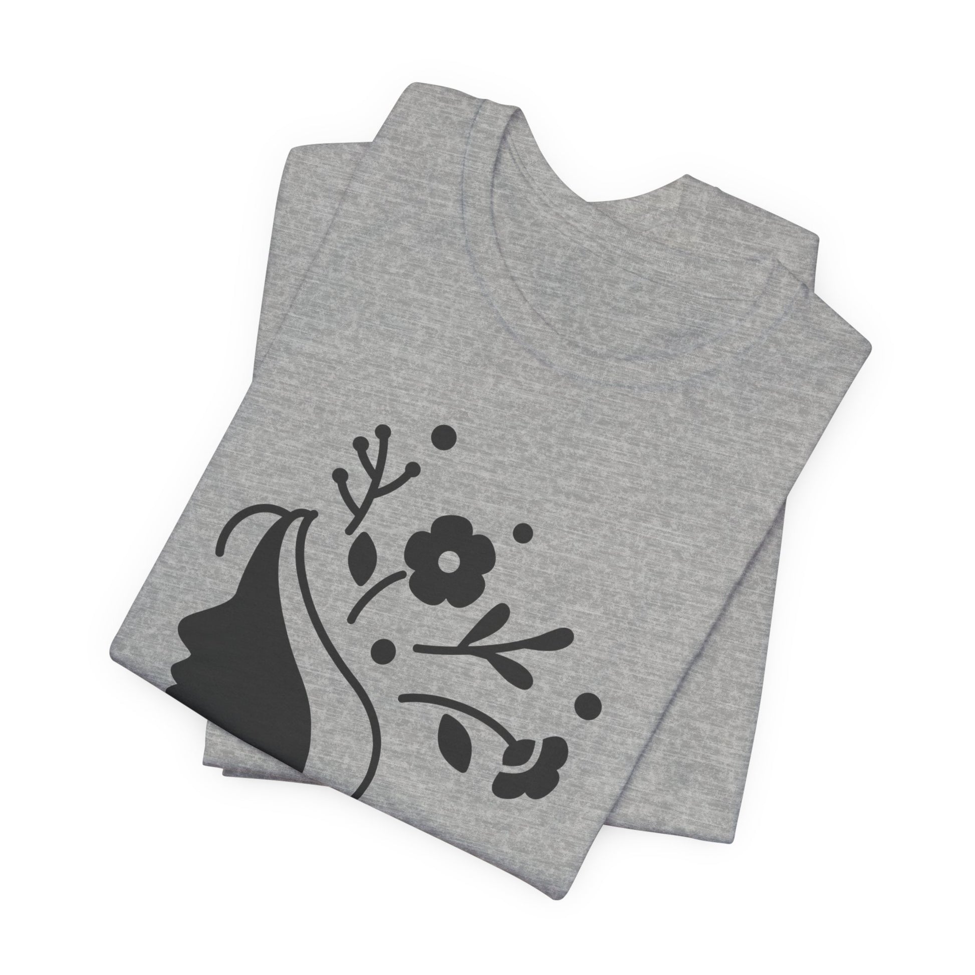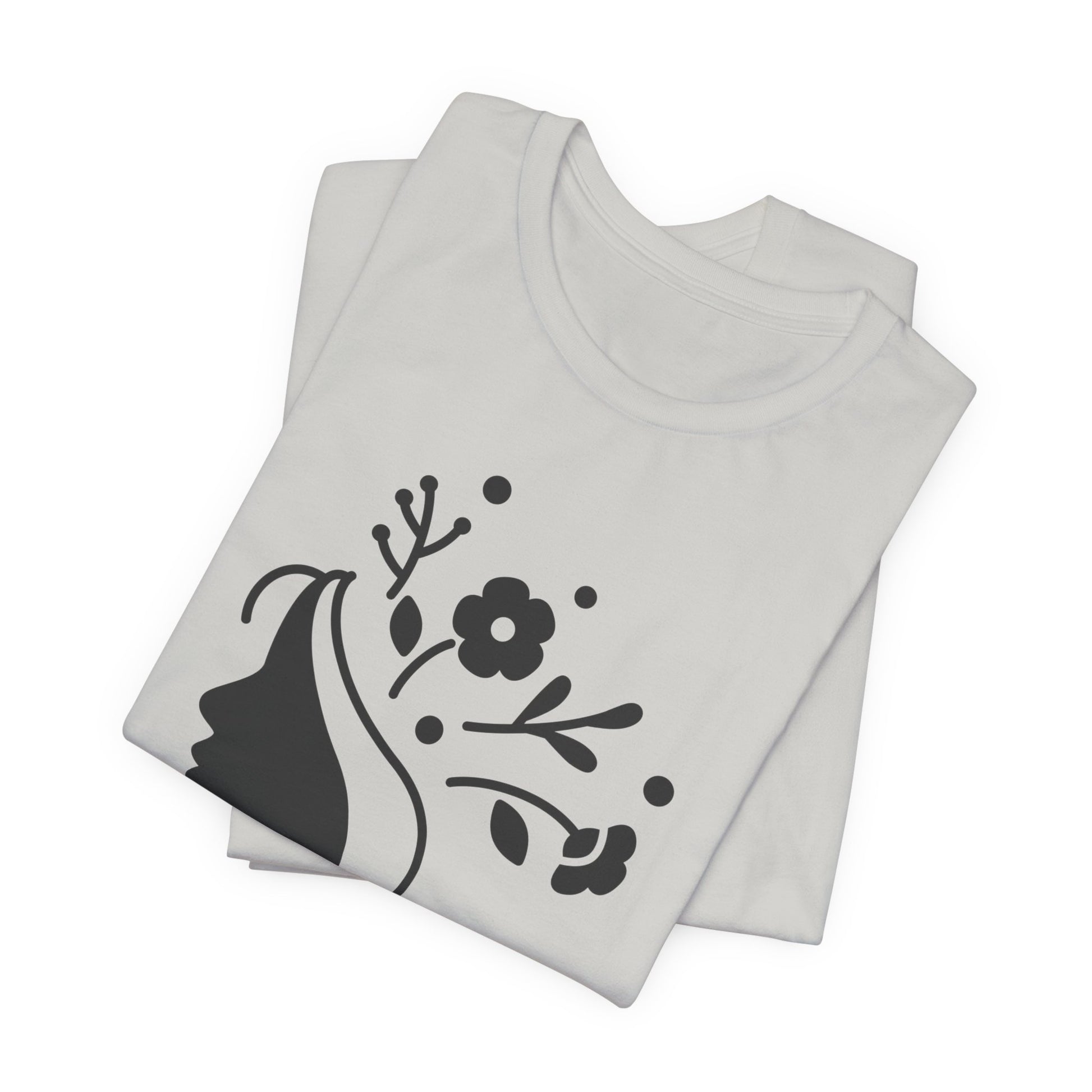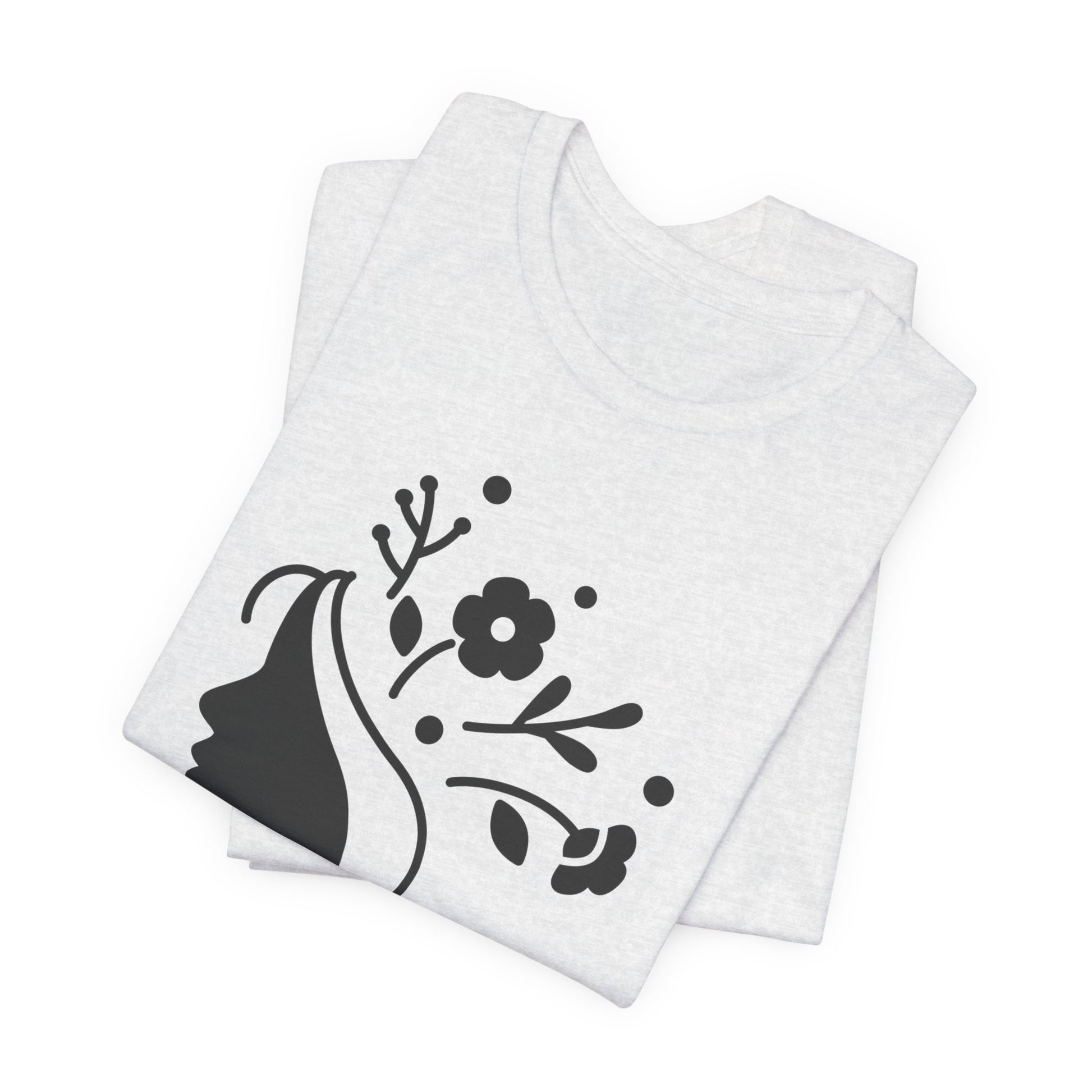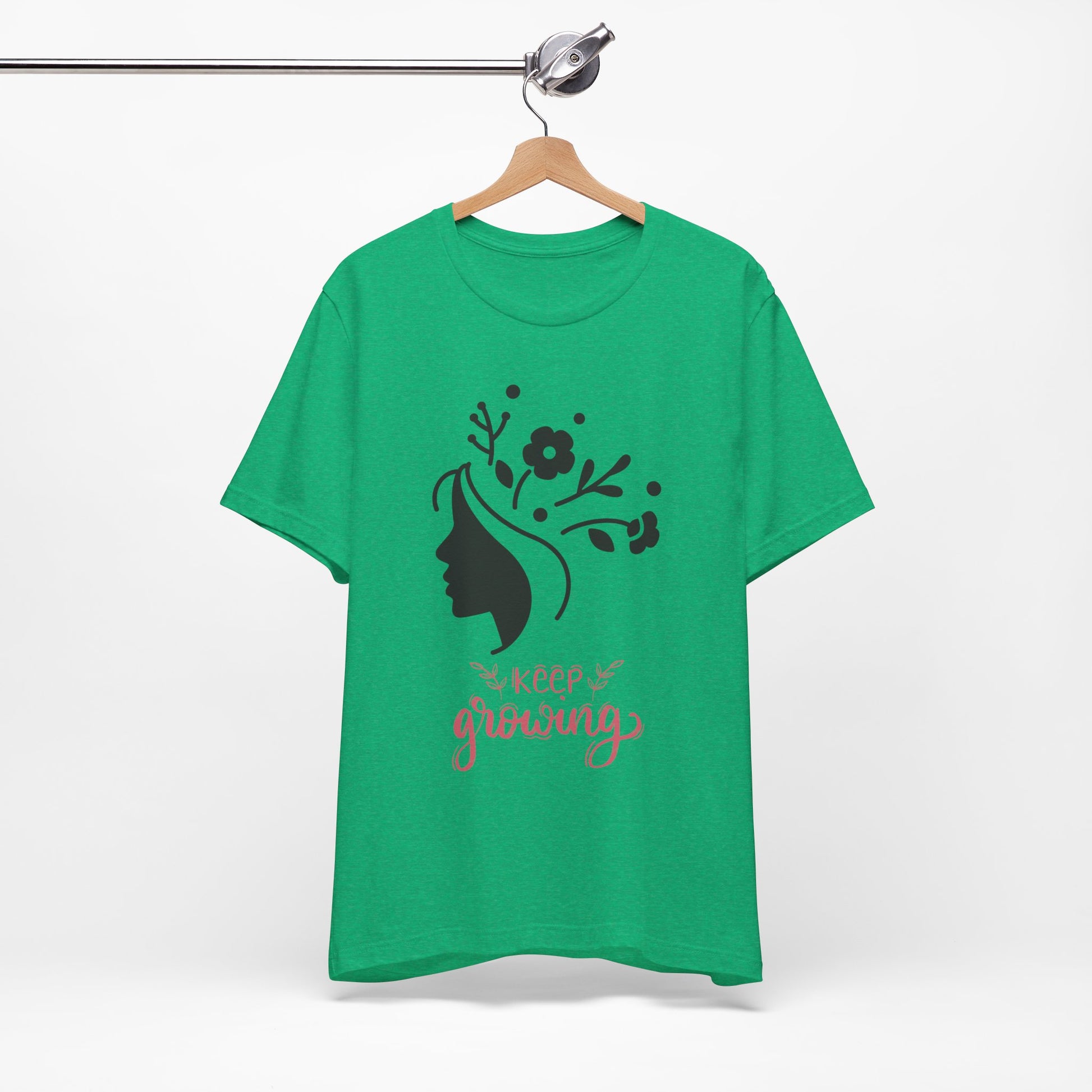 Celebrate personal growth with our "Keep Growing" t-shirt, featuring a beautiful silhouette of a woman with flowers in her hair. This inspiring and elegant design is a perfect reminder of resilience and self-development.