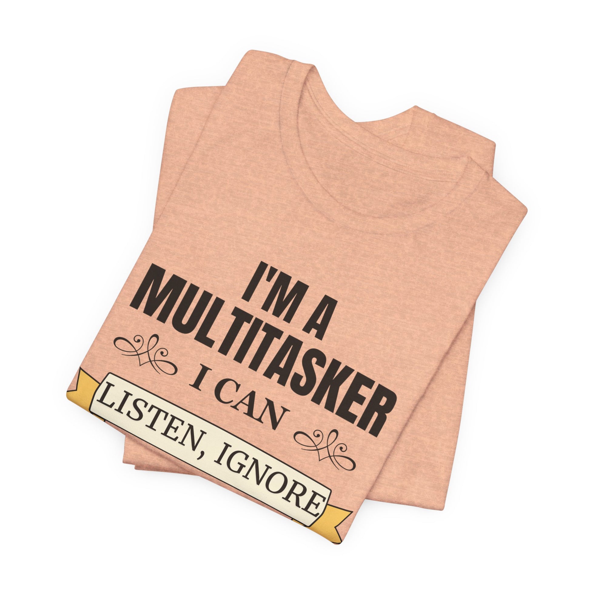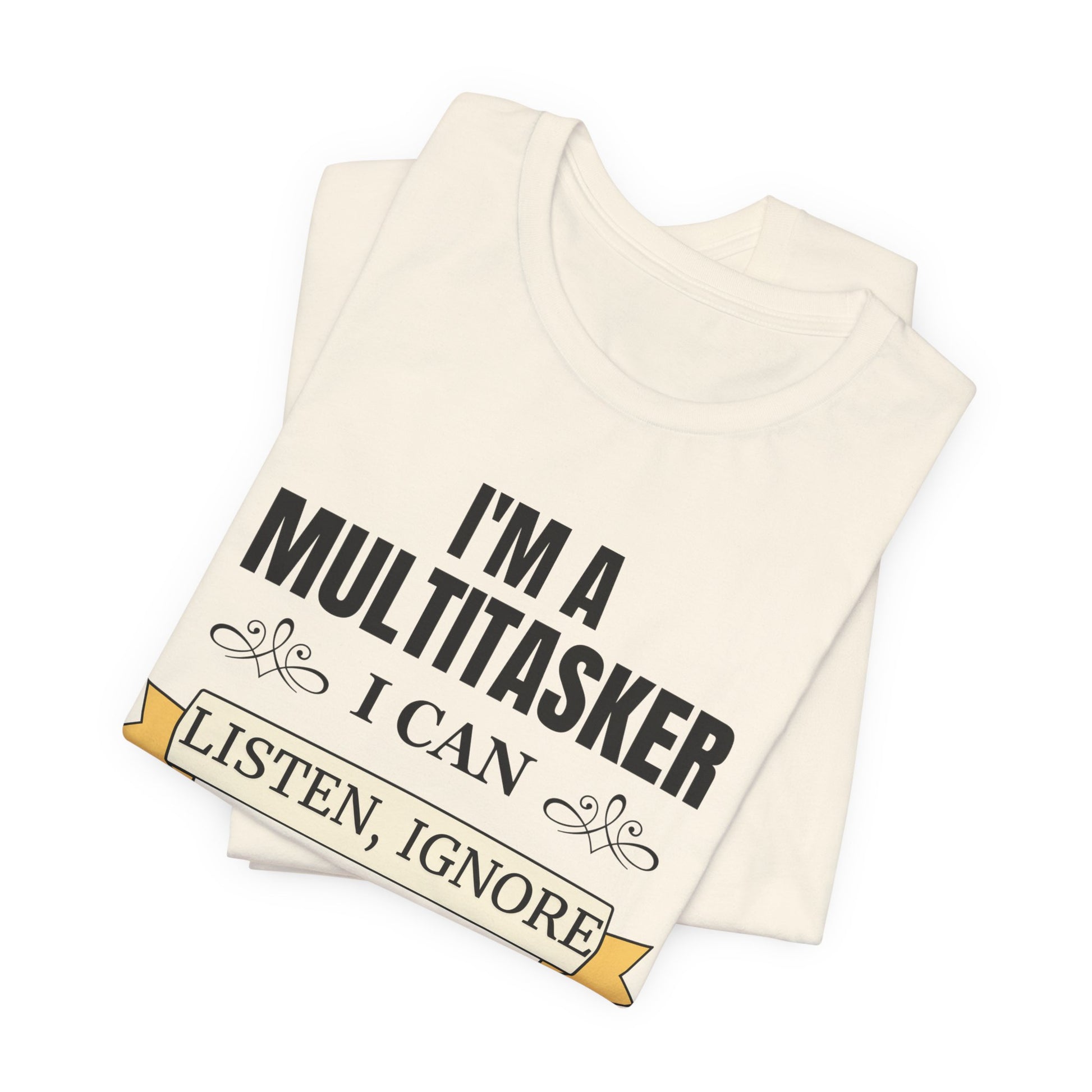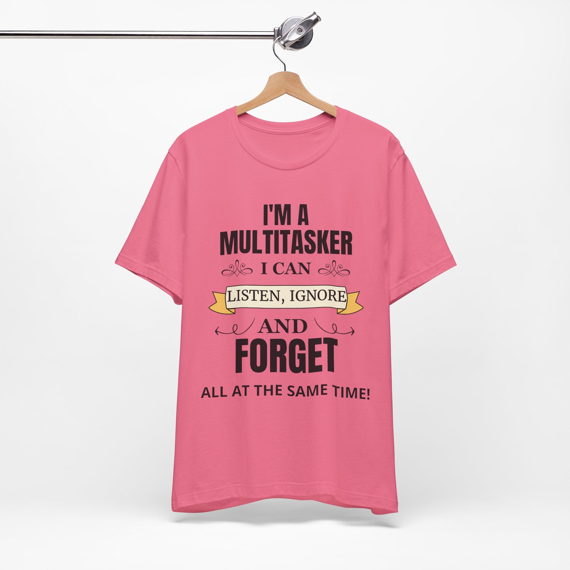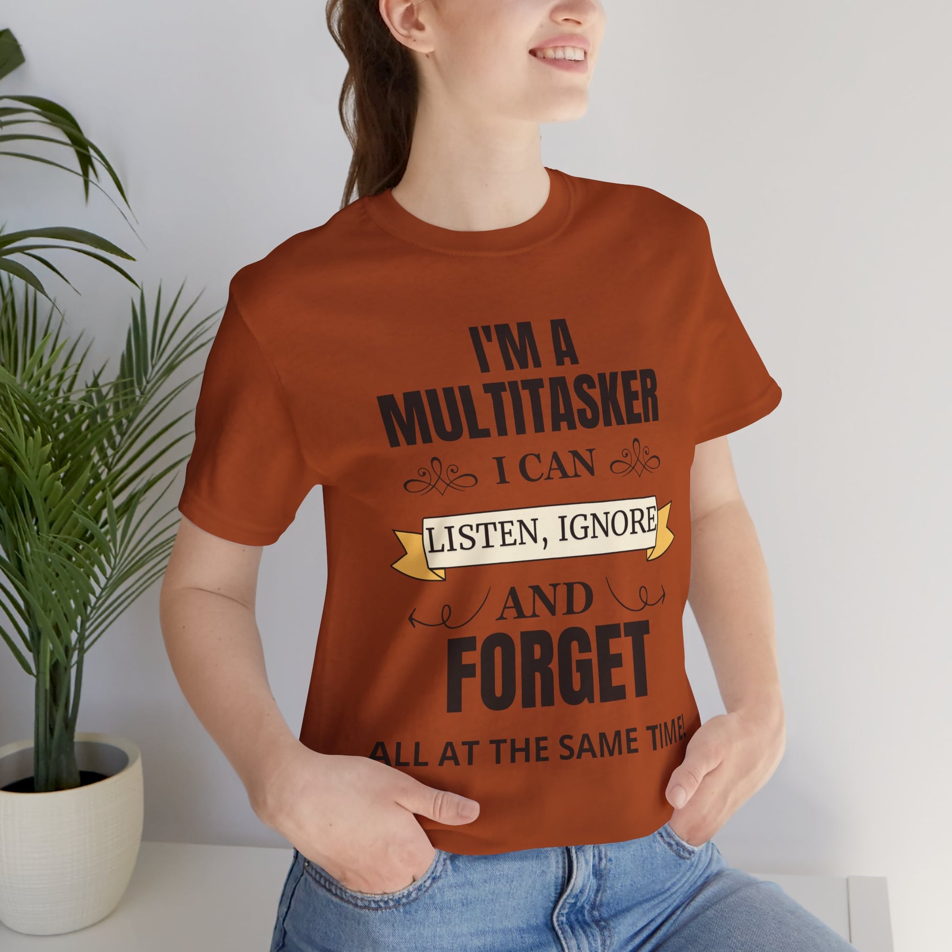Embrace your unique "multitasking" skills with this humorous graphic tee! Perfect for anyone who juggles listening, ignoring, and forgetting all at once. A funny gift for friends, family, or colleagues with a great sense of humor.