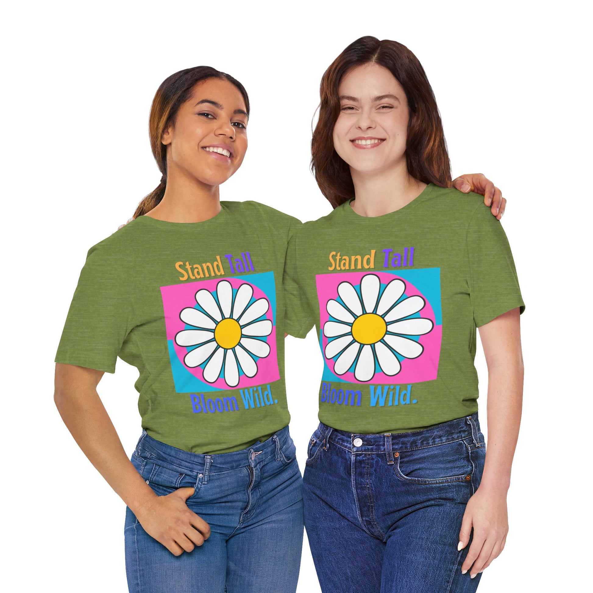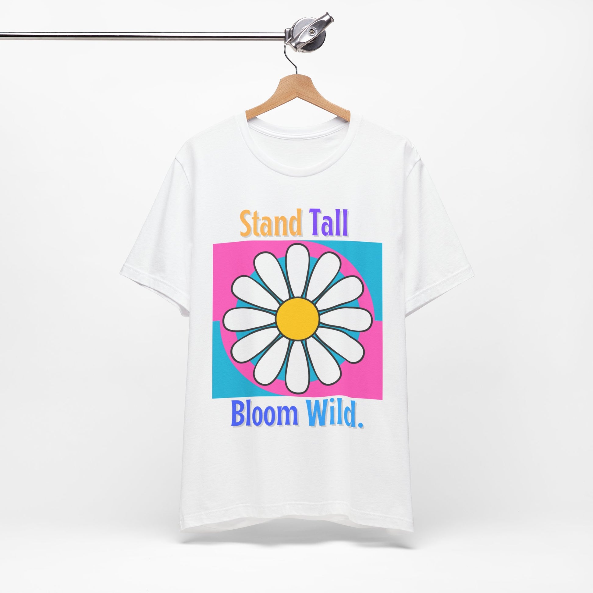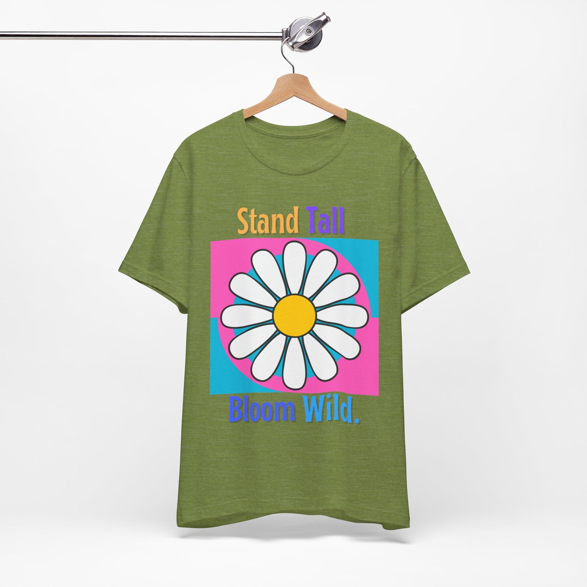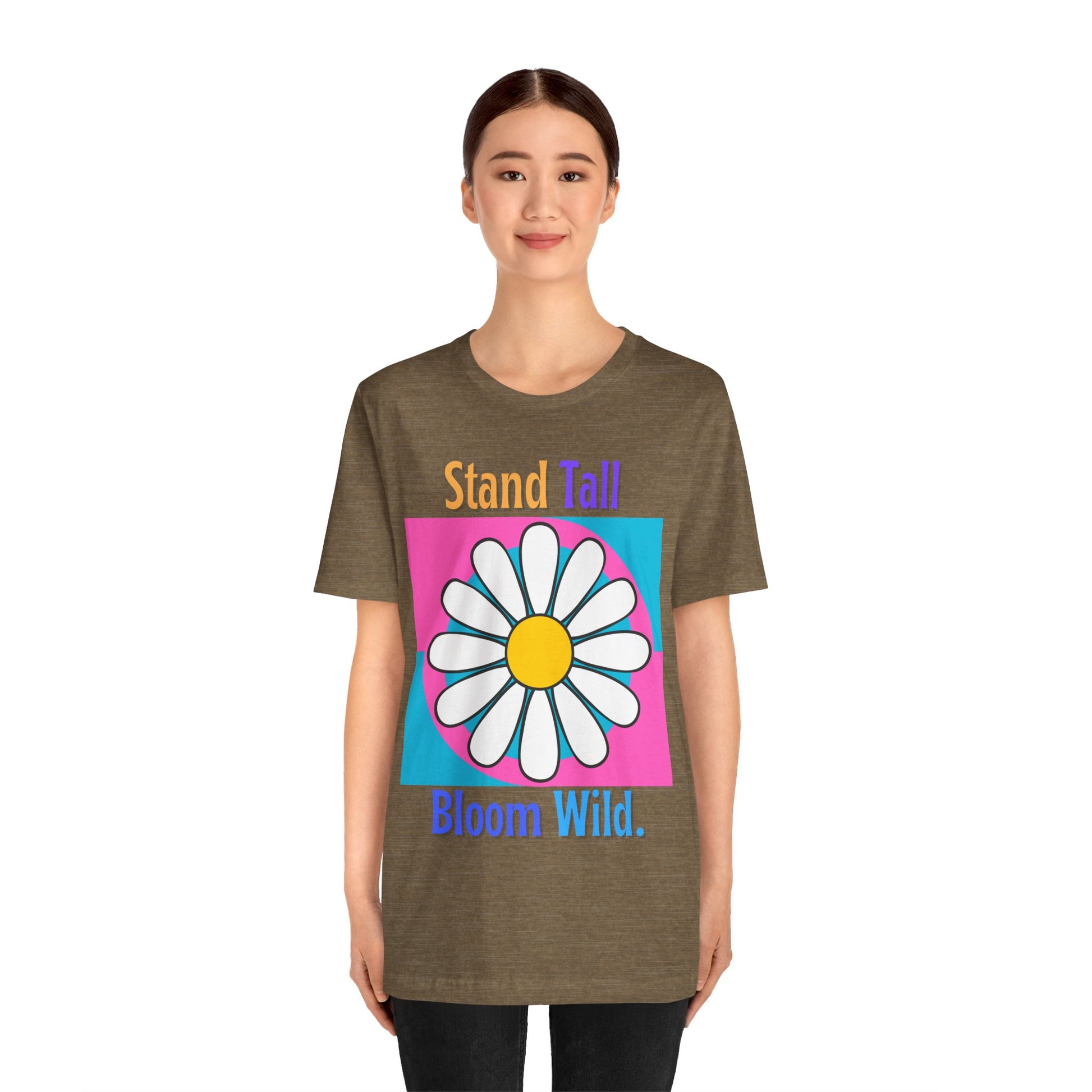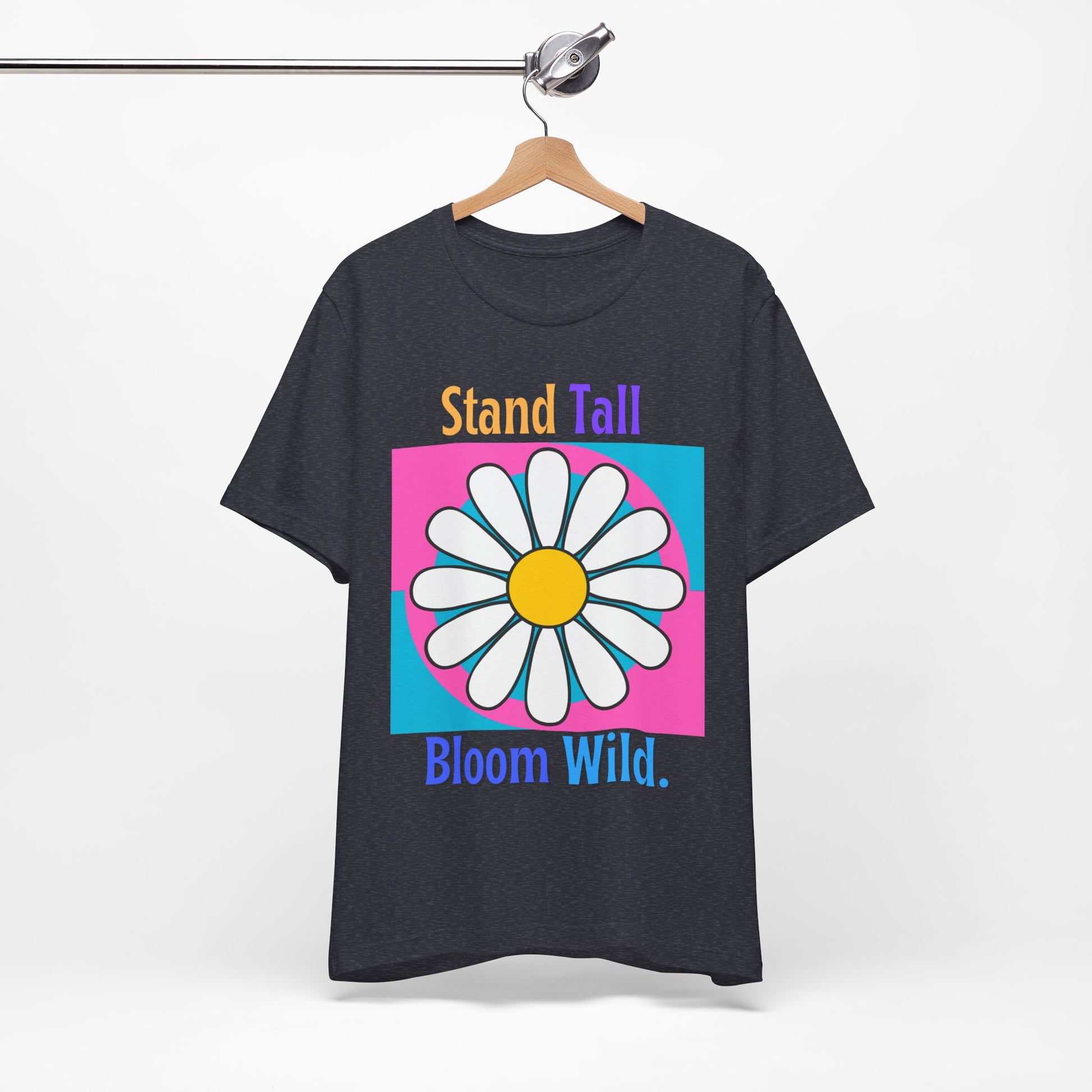 Embrace your unique spirit with this vibrant "Stand Tall Bloom Wild" daisy graphic tee. Perfect for adding a touch of positivity and retro flair to your everyday style.