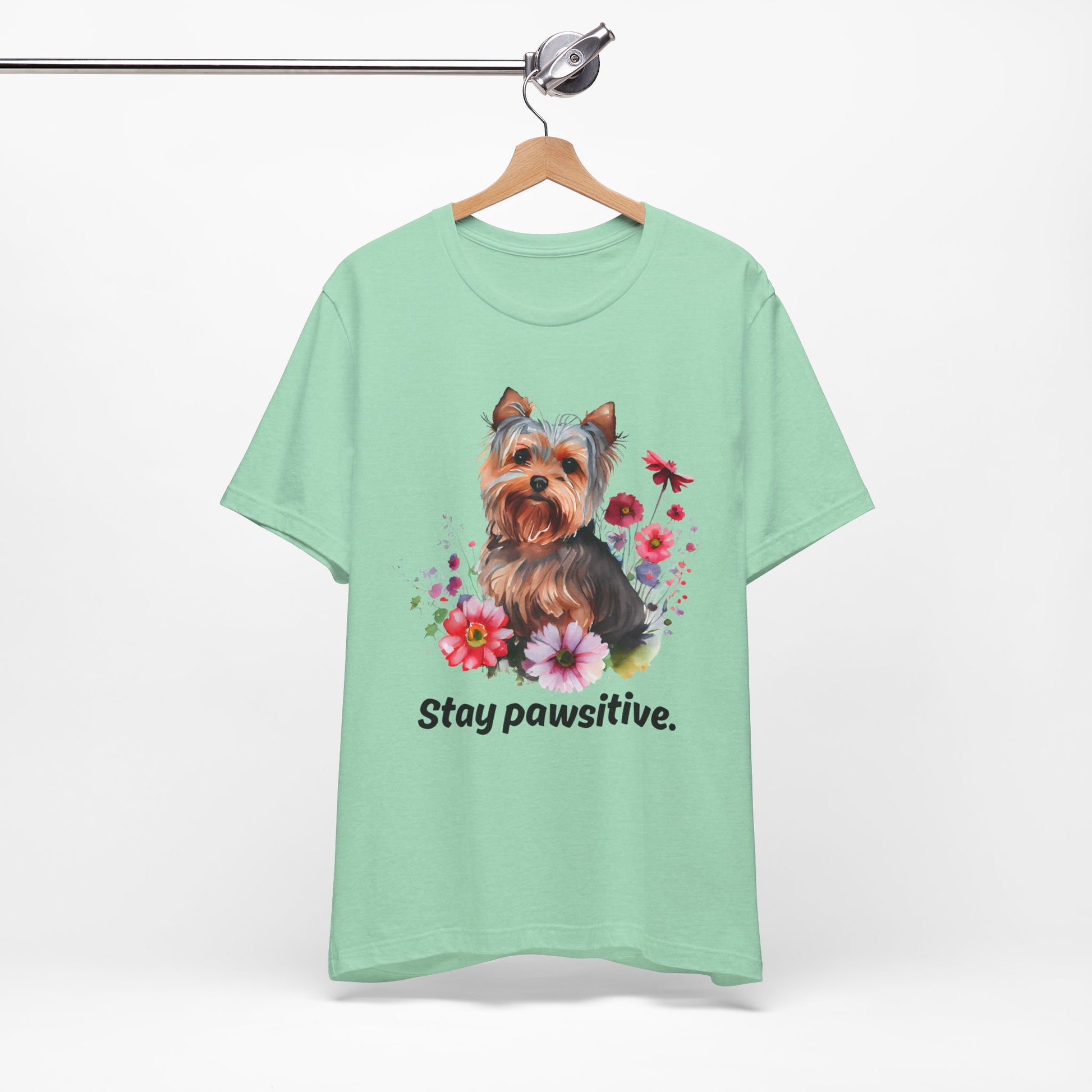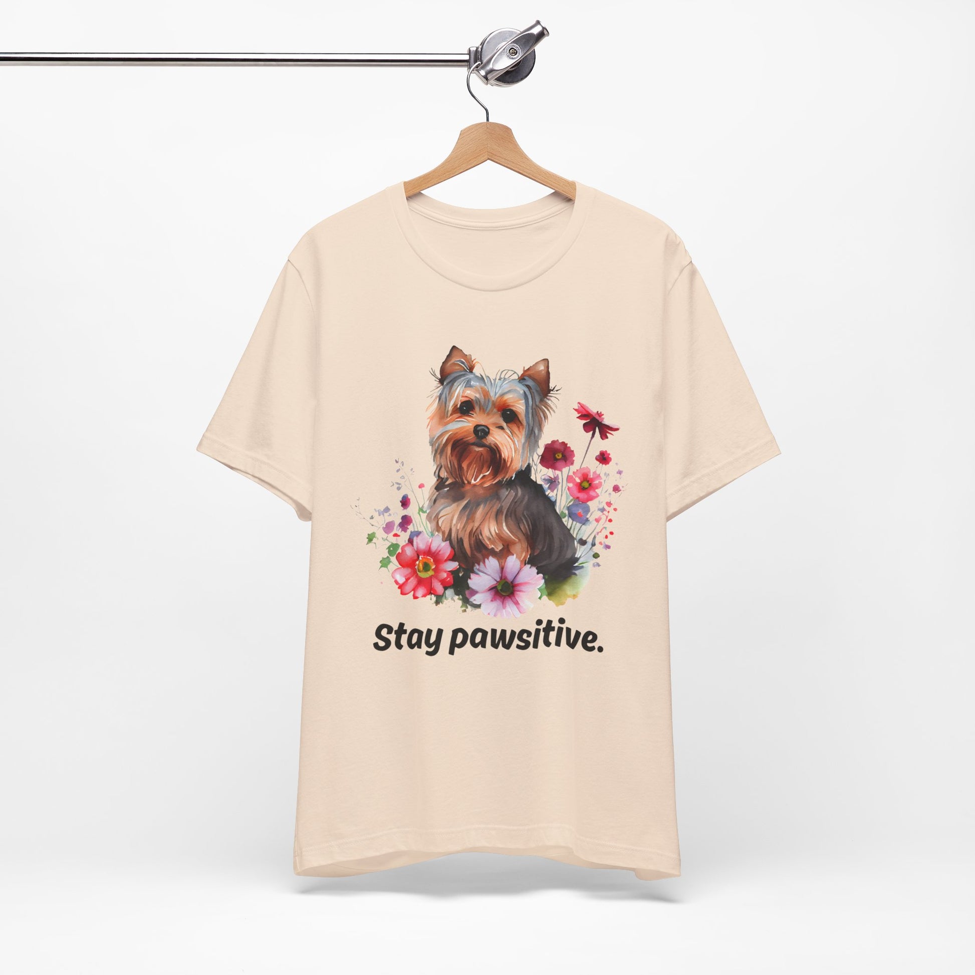 Embrace positivity with this charming Unisex Jersey Short Sleeve Tee, featuring an adorable design that showcases a lovable dog amidst vibrant flowers and the uplifting message, "Stay pawsitive." This tee captures a warm, joyful vibe, making it perfect for casual outings or cozy days at home. It makes an ideal gift for dog lovers, pet owners, or anyone who appreciates a bit of whimsy in their wardrobe. Great for everyday wear, casual meet-ups, or as a delightful birthday gift. Suitable for all seasons, this tee is versatile enough to be layered or worn alone on sunny days.